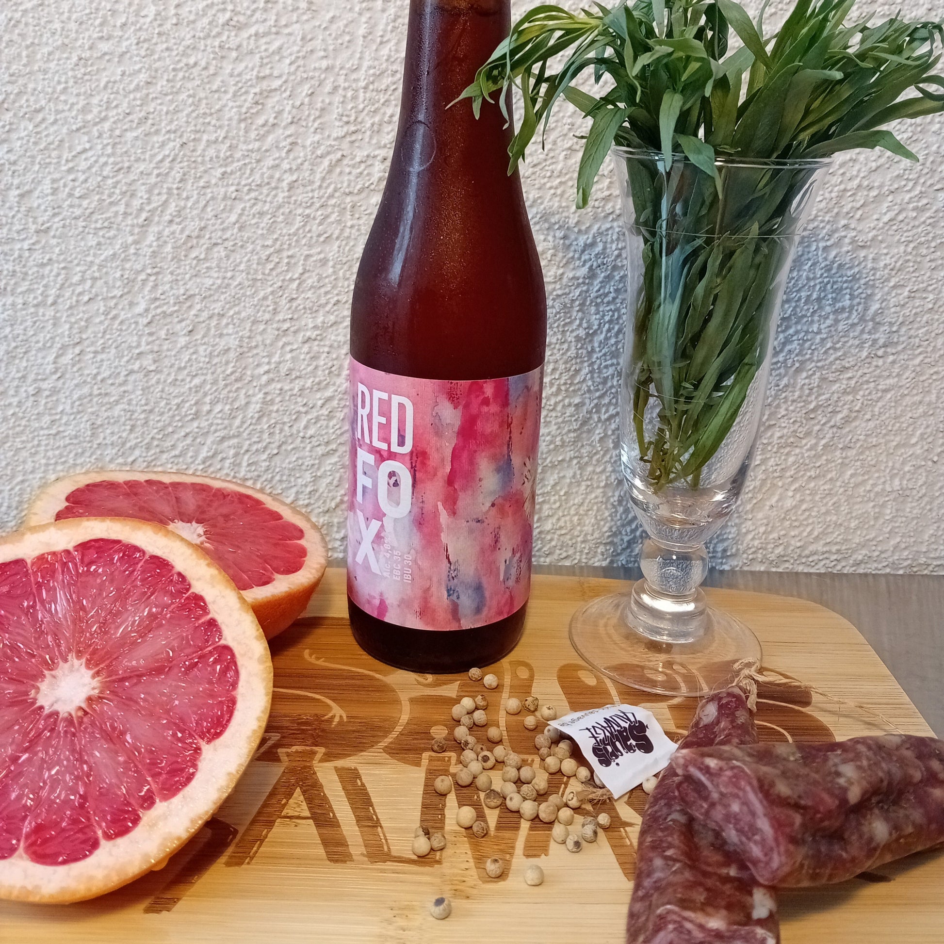De Foxy Dragon is een worst met rode pompelmoes en dragon. De Red Fox van BAS Brewery met zijn braambes en witte wijn gist is zuur, fruitig en fris en combineert heerlijk met de bittere toetsen van de pompelmoes. Een erg leuke worst met een wat hoger peper gehalte om alles te dragen.
